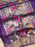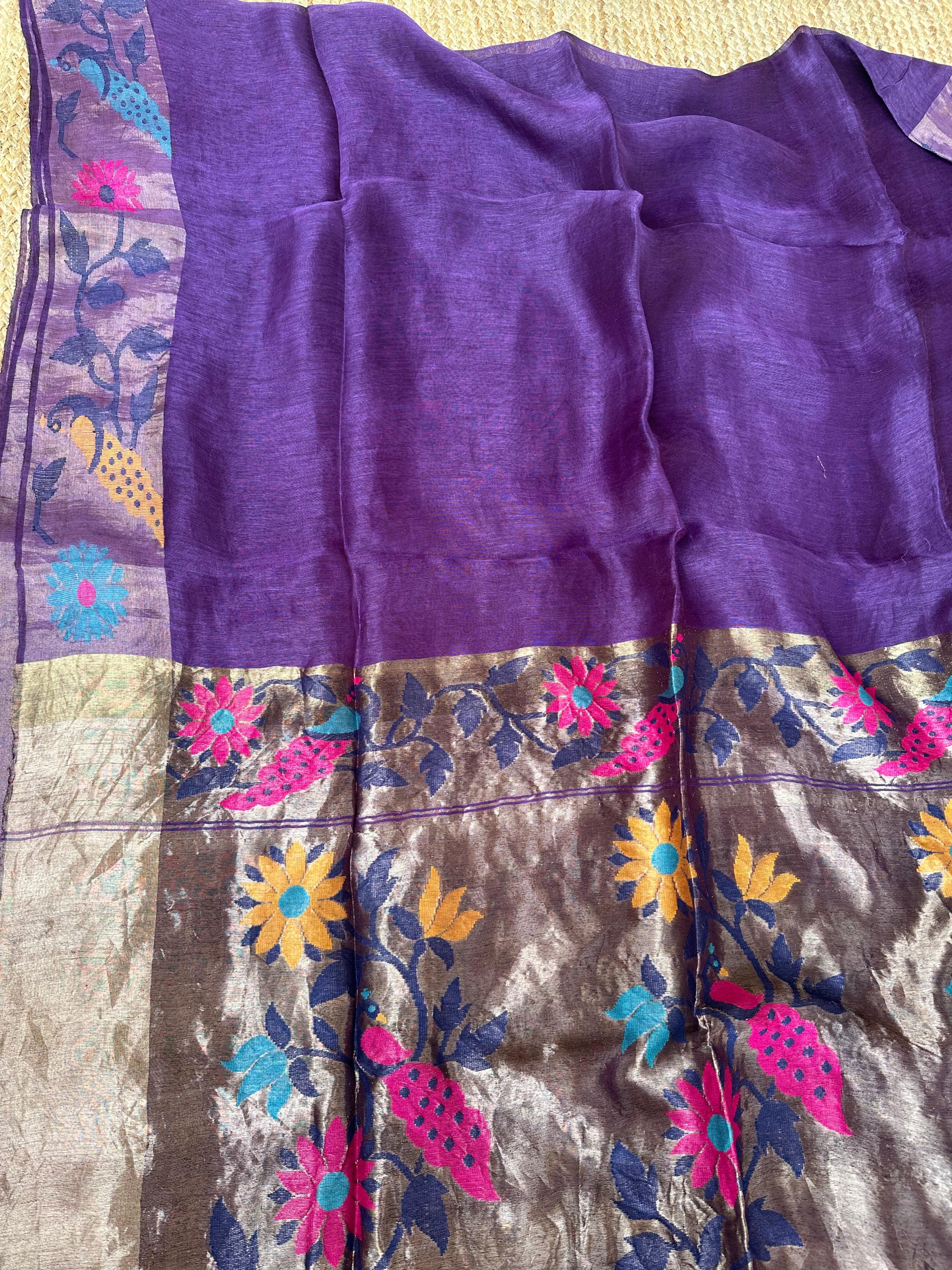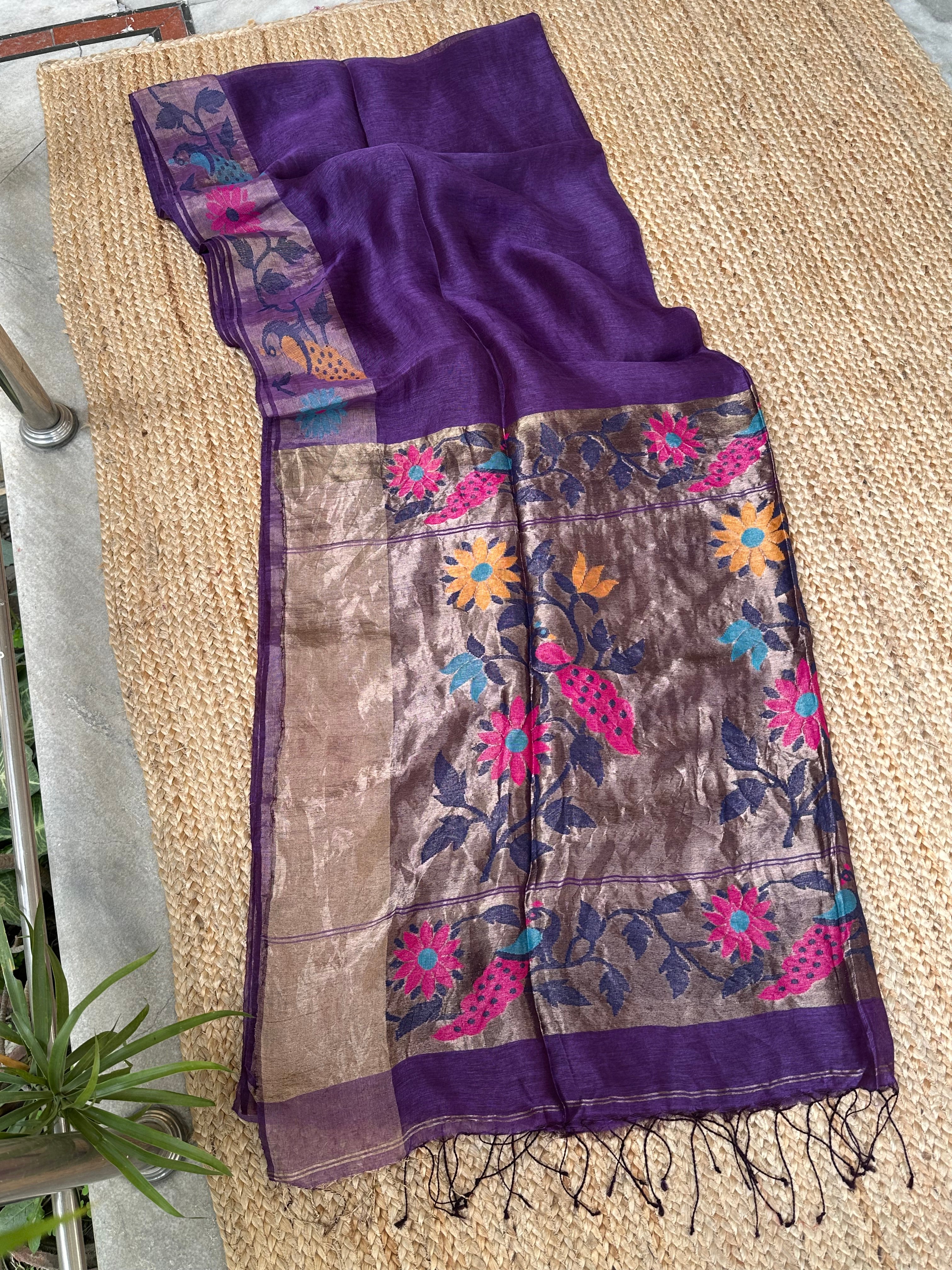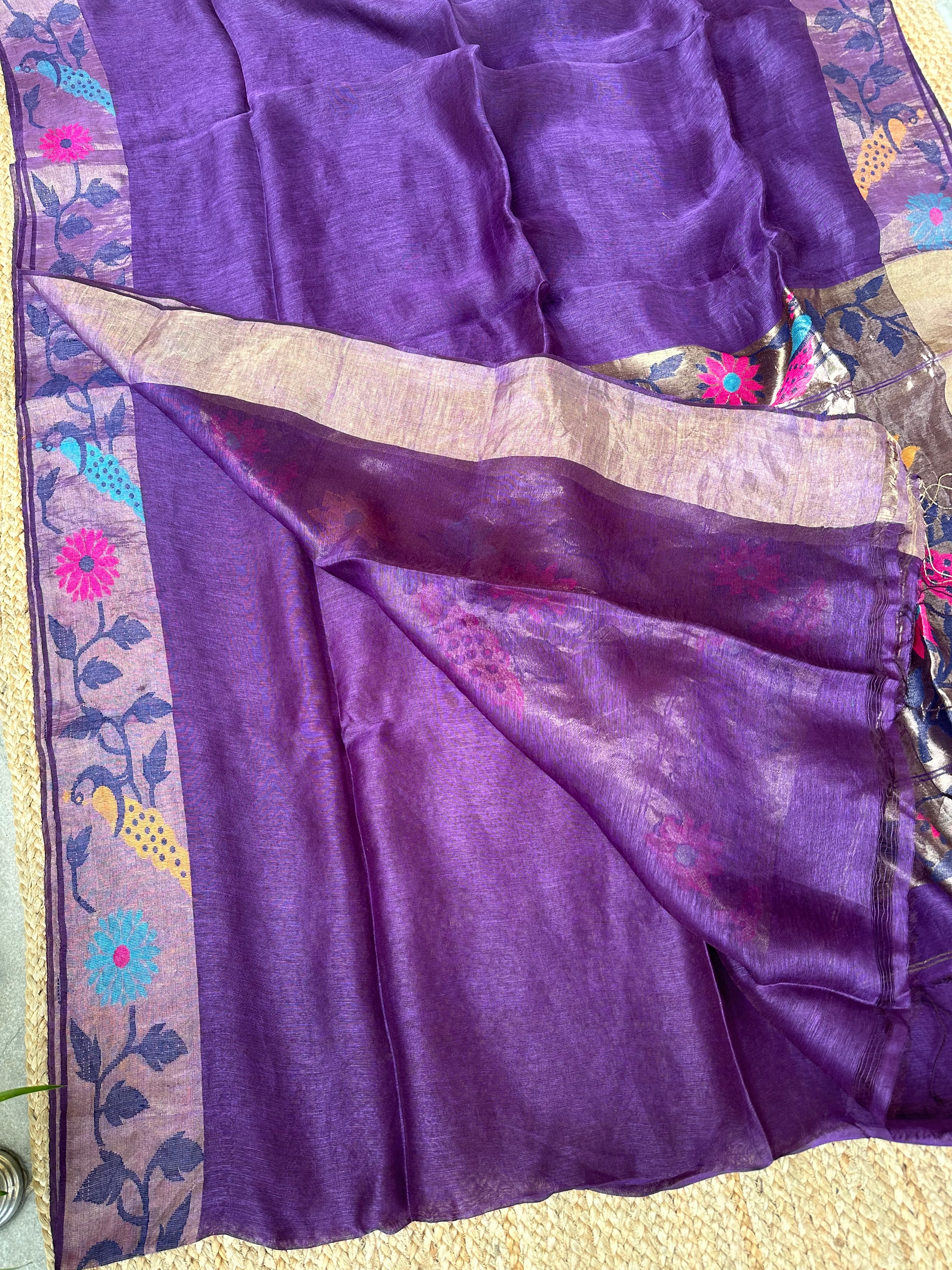 Purple Linen Silk Handloom Silver Pallu Paithani Saree