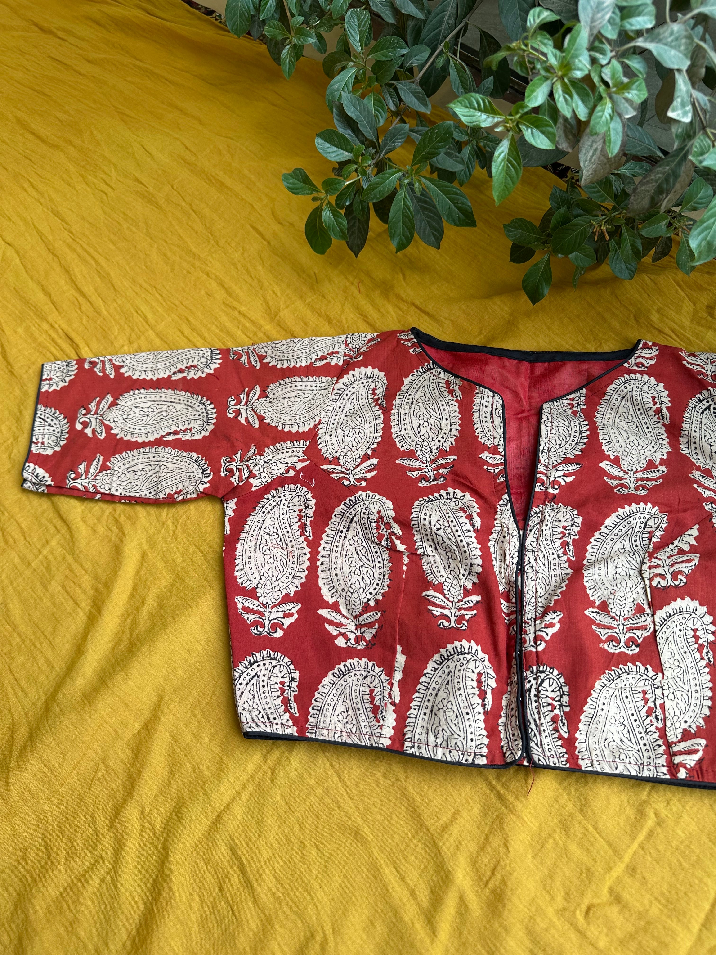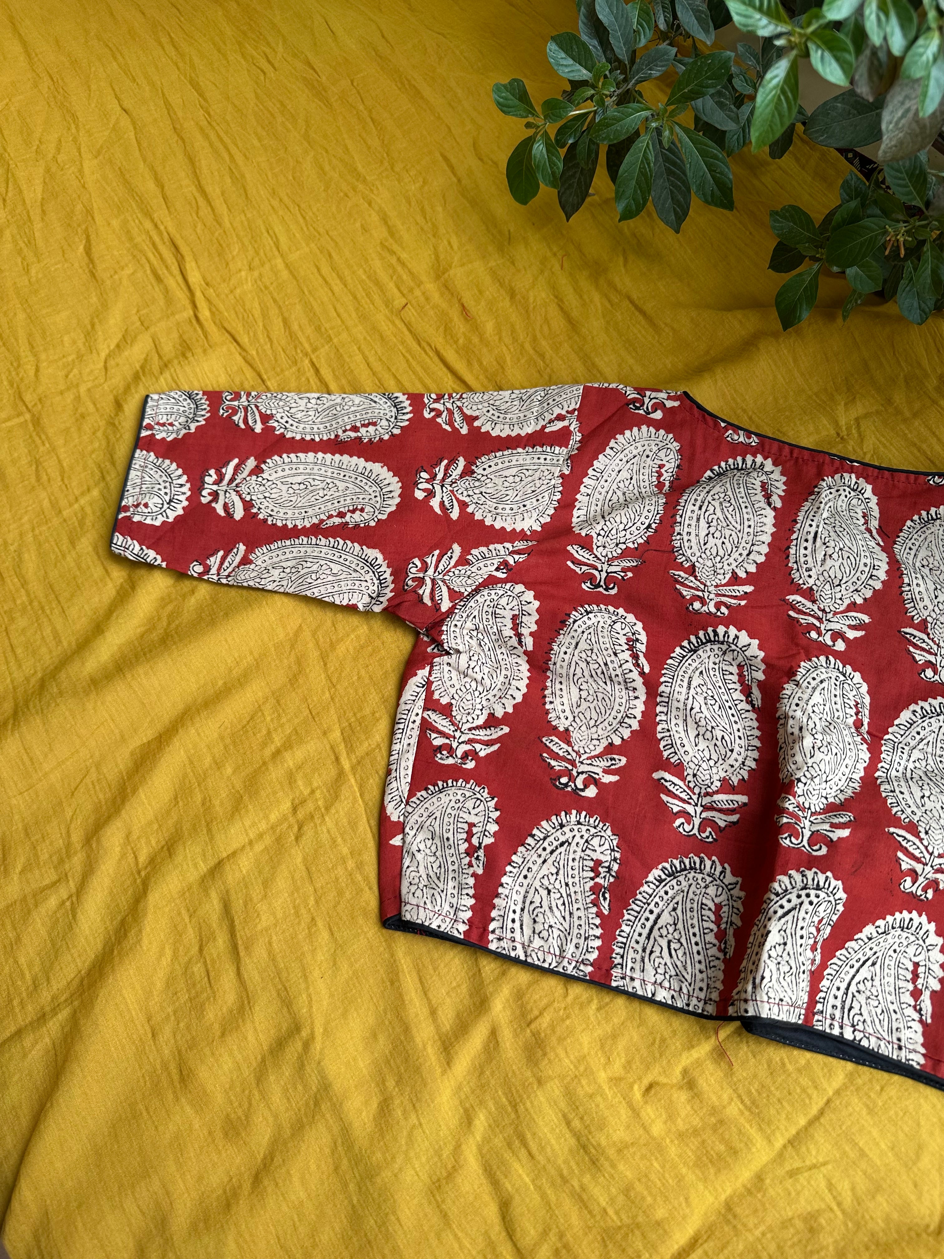 Red Block Printed Cotton Printed Blouse