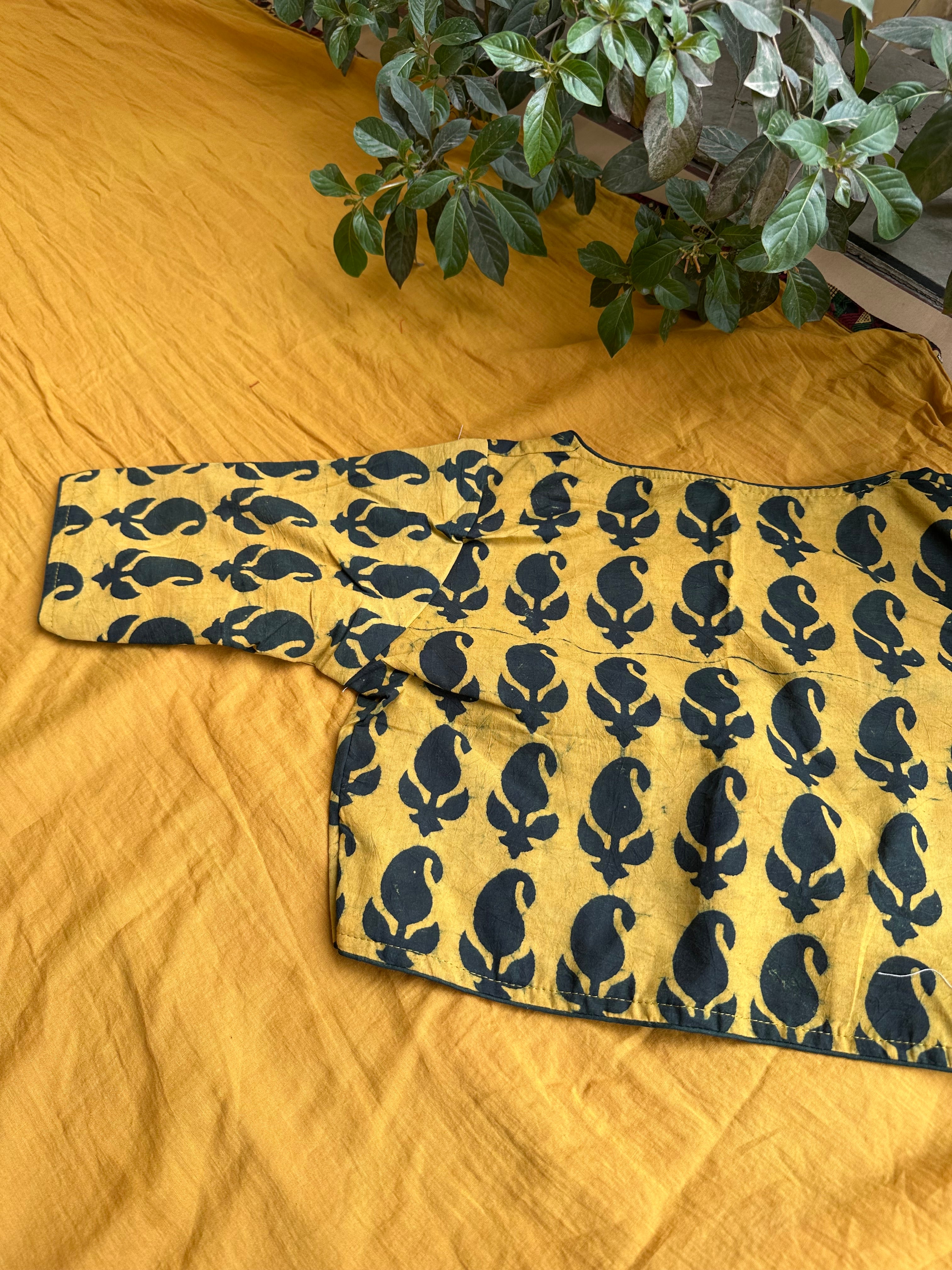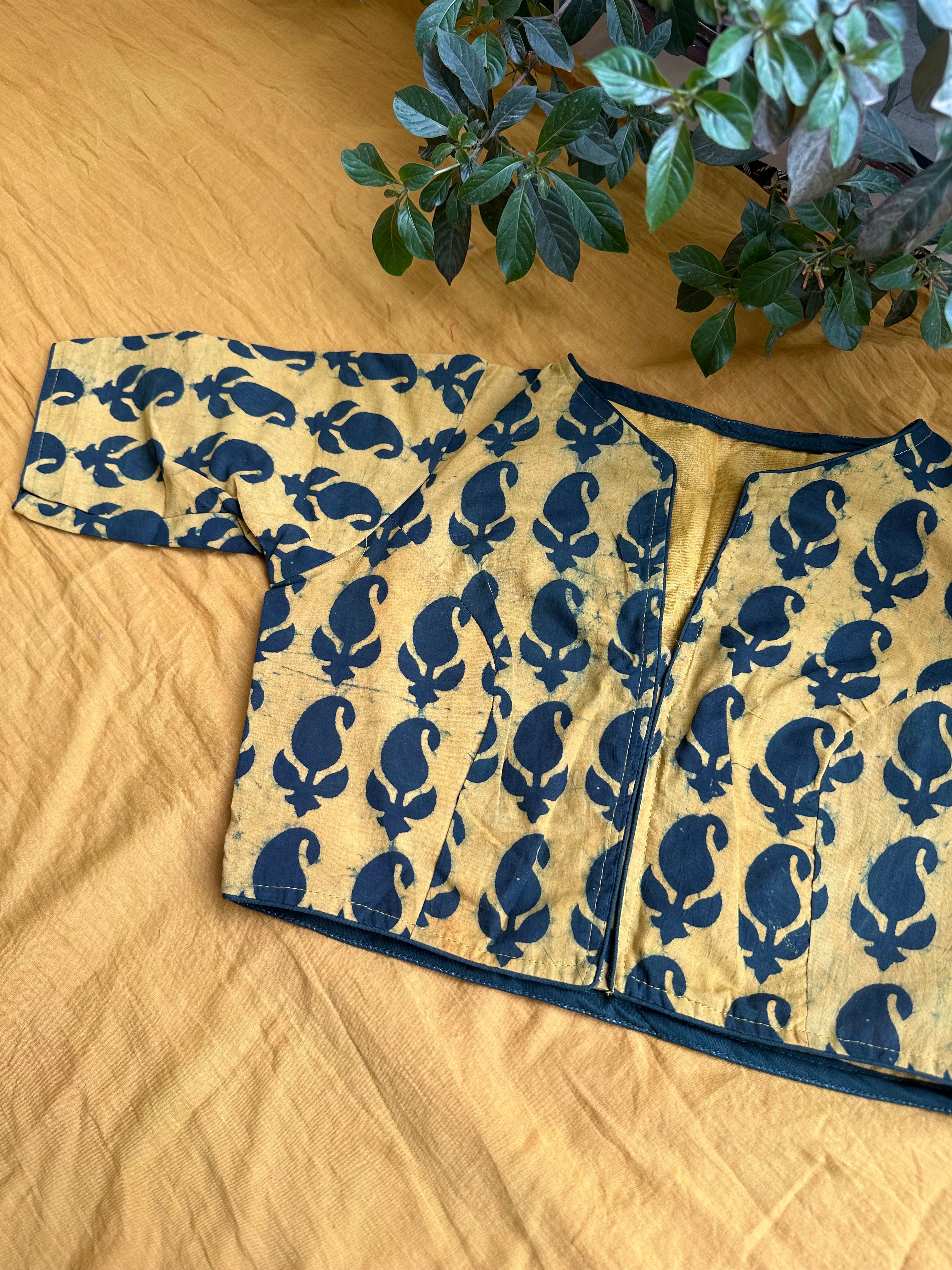 Yellow Indigo Block Printed Cotton Printed Blouse